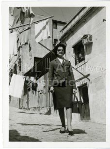 [Retrato de uma enfermeira da Misericórdia de Lisboa a caminhar para o domicílio de um utente]