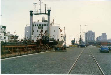 Destaca-se, em primeiro plano, um navio, junto ao cais.